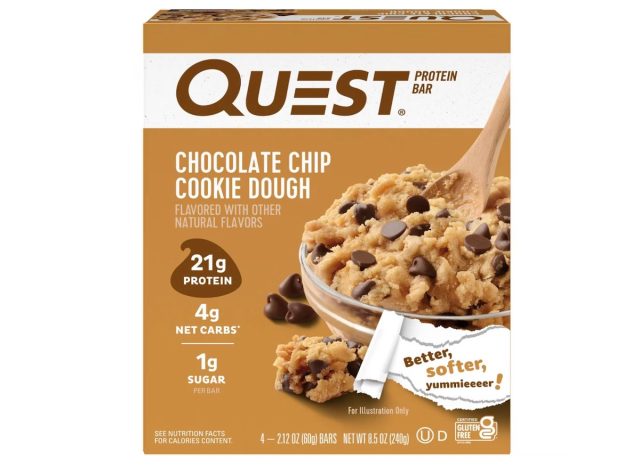 Quest Chocolate Chip Cookie Dough Protein Bar delivers a sweet, indulgent bar, minus the sugar-spike guilt trip. “With around 200 calories and a protein blend of whey and milk isolates, this bar keeps satiety hormones hyped and ghrelin on a leash,” says Berger. “Processing protein also burns more energy, giving your metabolism some help. And because it’s satisfying, you’re less likely to raid the pantry afterward. Works great when you want dessert-level vibes without derailing your goals.”