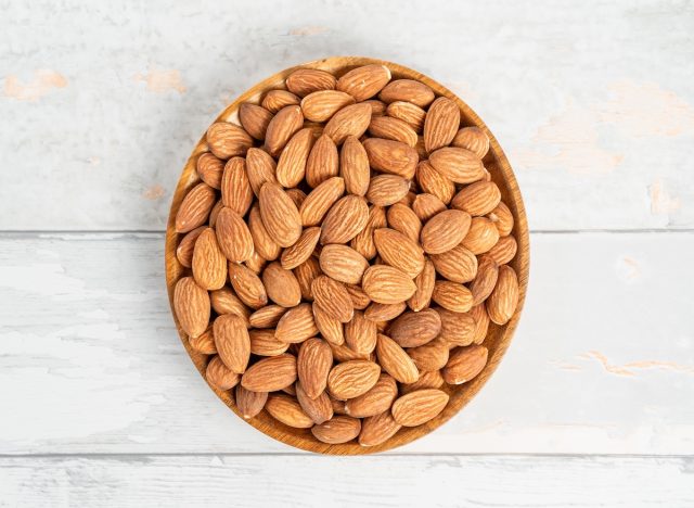 Almonds are a protein-packed healthy snack that Best recommends eating to help fight arm fat. “Almonds are a nutrient dense food rich in protein and healthy fats that sustain energy, allowing you to have an effective arm-focused workout,” she says.